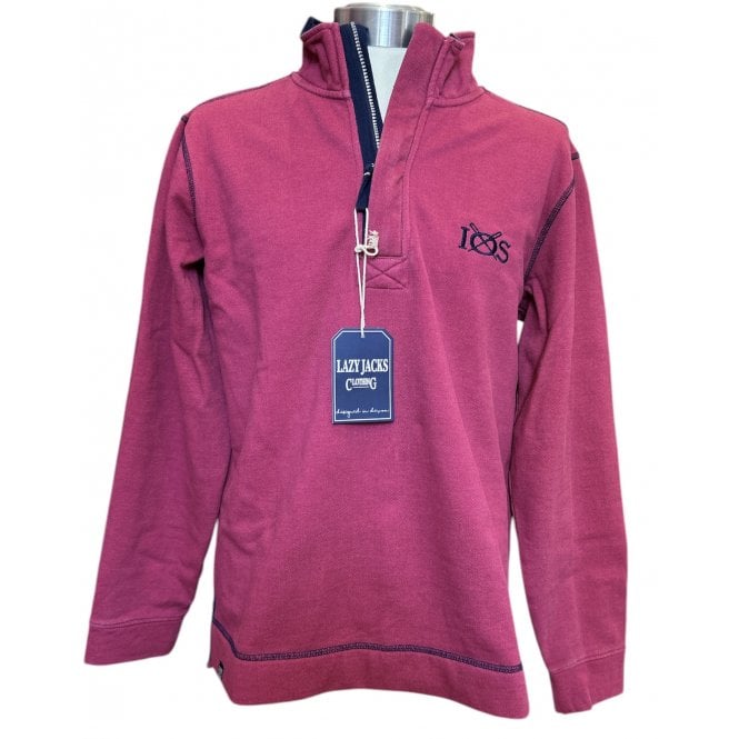 Lazy Jacks Scilly Sail Flag 1/4 Zip Panelled Sweatshirt - Unisex Fit - Rouge