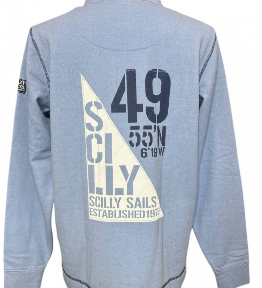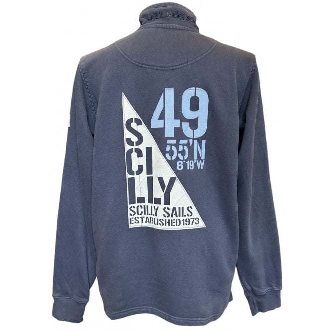 Lazy Jacks Scilly Sail Flag 1/4 Zip Sweatshirt - Unisex Fit - Pigment Dyed Denim