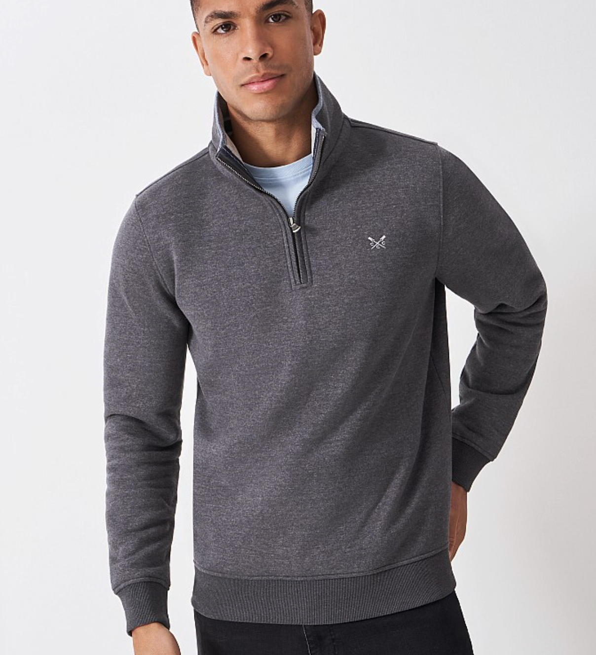 Classic Mens Crew Half Zip Sweatshirt - Charcoal