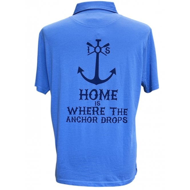 Joules Emmett Home is Where the Anchor Drops Soft Cotton Polo Shirt with Pocket - Blue