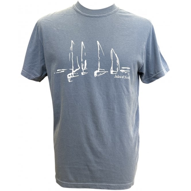 Classic, abstract design capturing the iconic vista of Scilly Sail Boats on a washed effect t-shirt.  Made from a blend of materials with a front print.